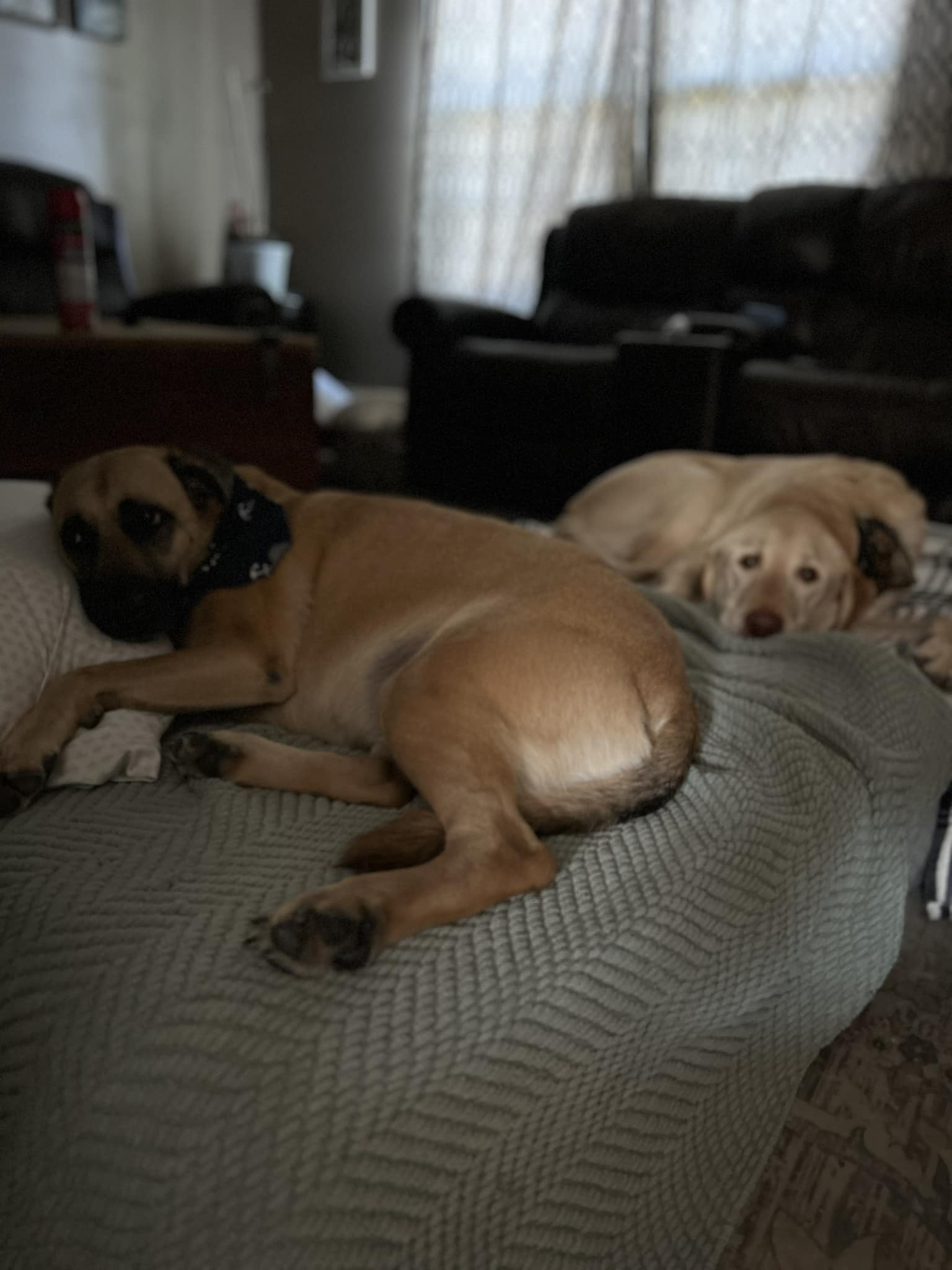 So, now to the real reason I sat down to write. I got distracted, as I easily do, by the timeframe and content of my last post! But, here I go. Our family has two pups. Whiskey is a purebred Yellow Labrador Retriever (7 years last April 1st) and Mississippi (“Missi” will be 7 on Halloween-ish) is a rescued Black Mouth Cur from… you guessed it…Mississippi! This summer has proved to be very challenging for these “Kids”. Missi was diagnosed with advanced heart worm disease in May. We started her treatment in June and her last injection was the 30th of July. She is being seen in two days for a follow-up blood test to see if she has any baby worms. If so, we start the process all over. The regimen for this treatment is brutal. It is very painful for the dog and they are at complete exercise restriction. Imagine that with a brother that is a lab! It includes steroids that cause all sorts of side effects that are unpleasant for all involved. It also includes prescriptions for pain and to sedate her to help keep her calm. If all goes well, the blood test will show no worms and she will cease the exercise restriction the end of this month. Missi also managed to get an infection in one of her hind paws having it swell to twice its’ size and she was unable to bare any weight on it. More meds.