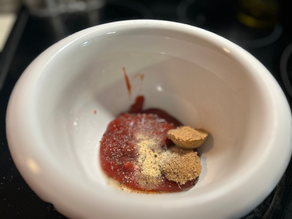 In a small bowl, mix all of the ingredients together for the sauce. Spread the sauce over the mini meatloaves with a pastry brush. Then bake the mini meatloaves uncovered at 375˚F for 30 minutes. Or until the internal temperature is 160˚F on an instant-read thermometer. Rest meatloaf about 5 minutes.