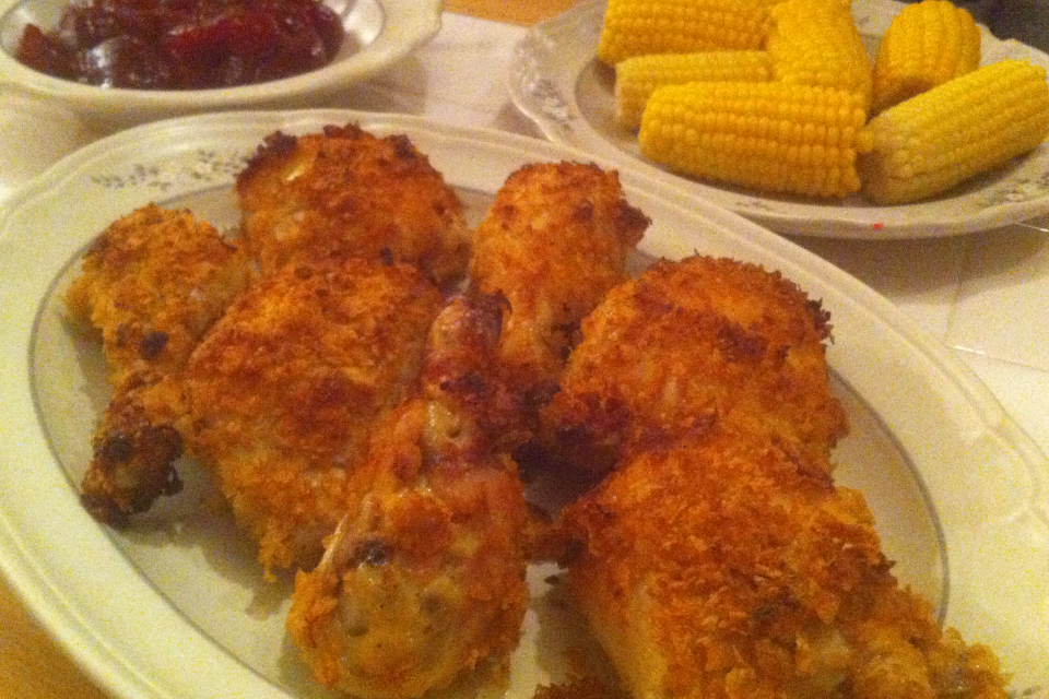 Oven Fried Buttermilk Chicken, Corn on the Cob, Cranberry-sauce
